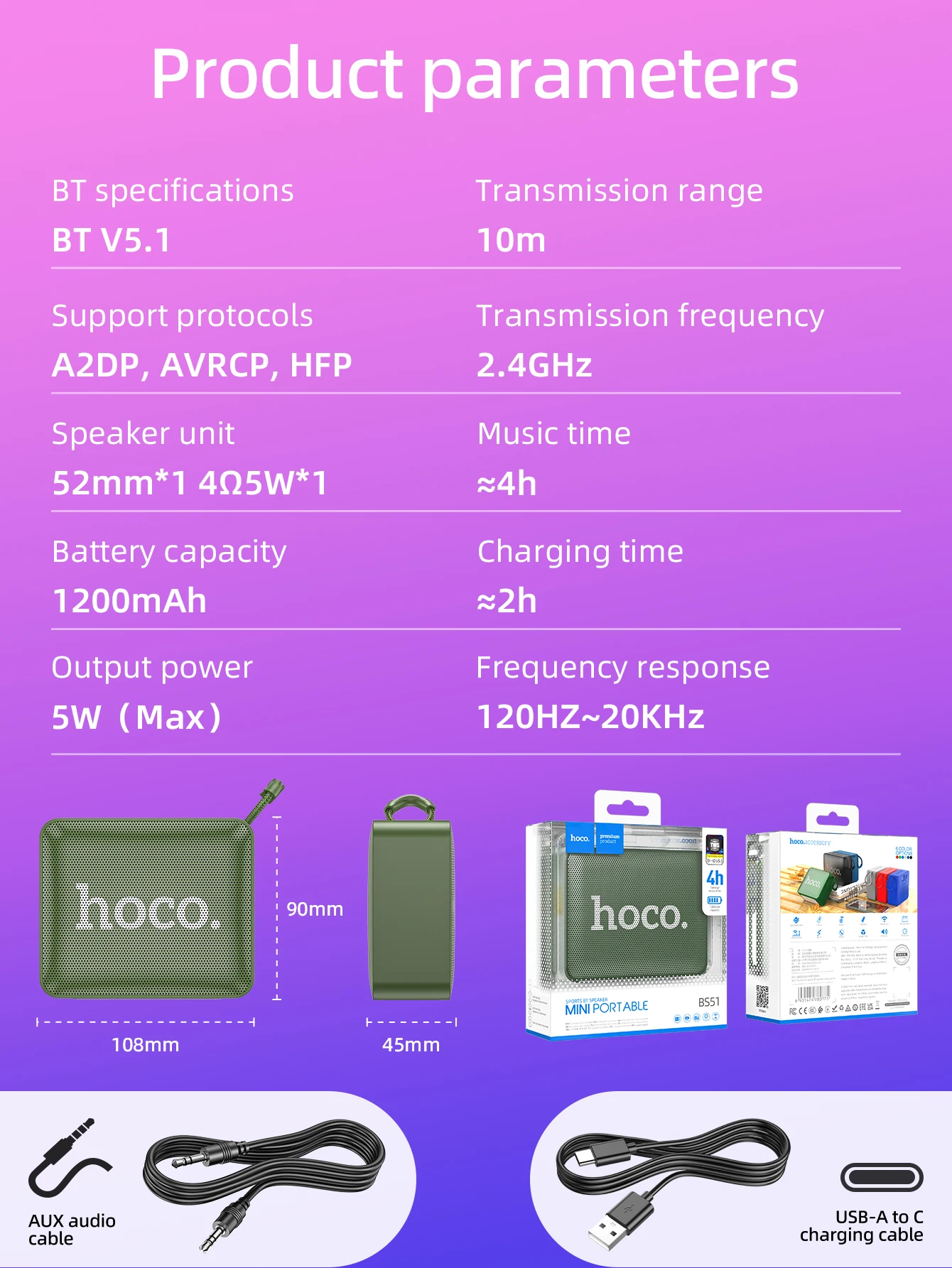 HOCO BS51 Mini Bluetooth Speaker with TWS & FM