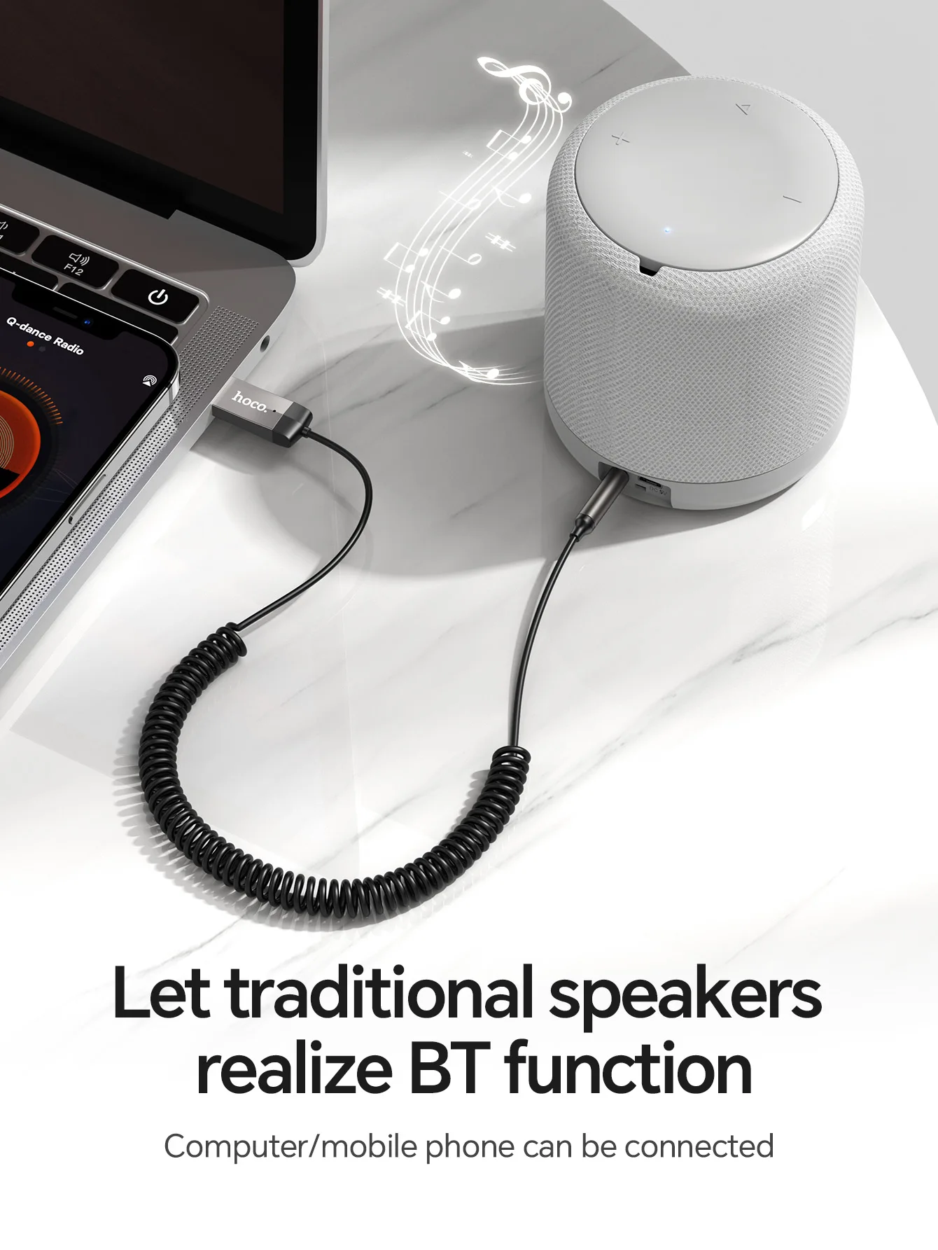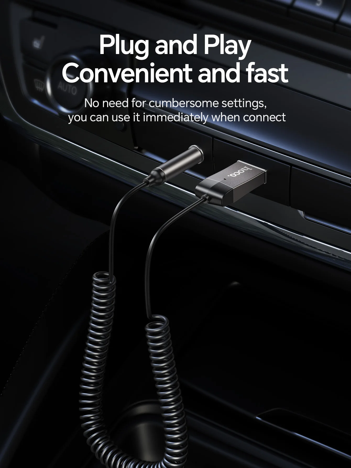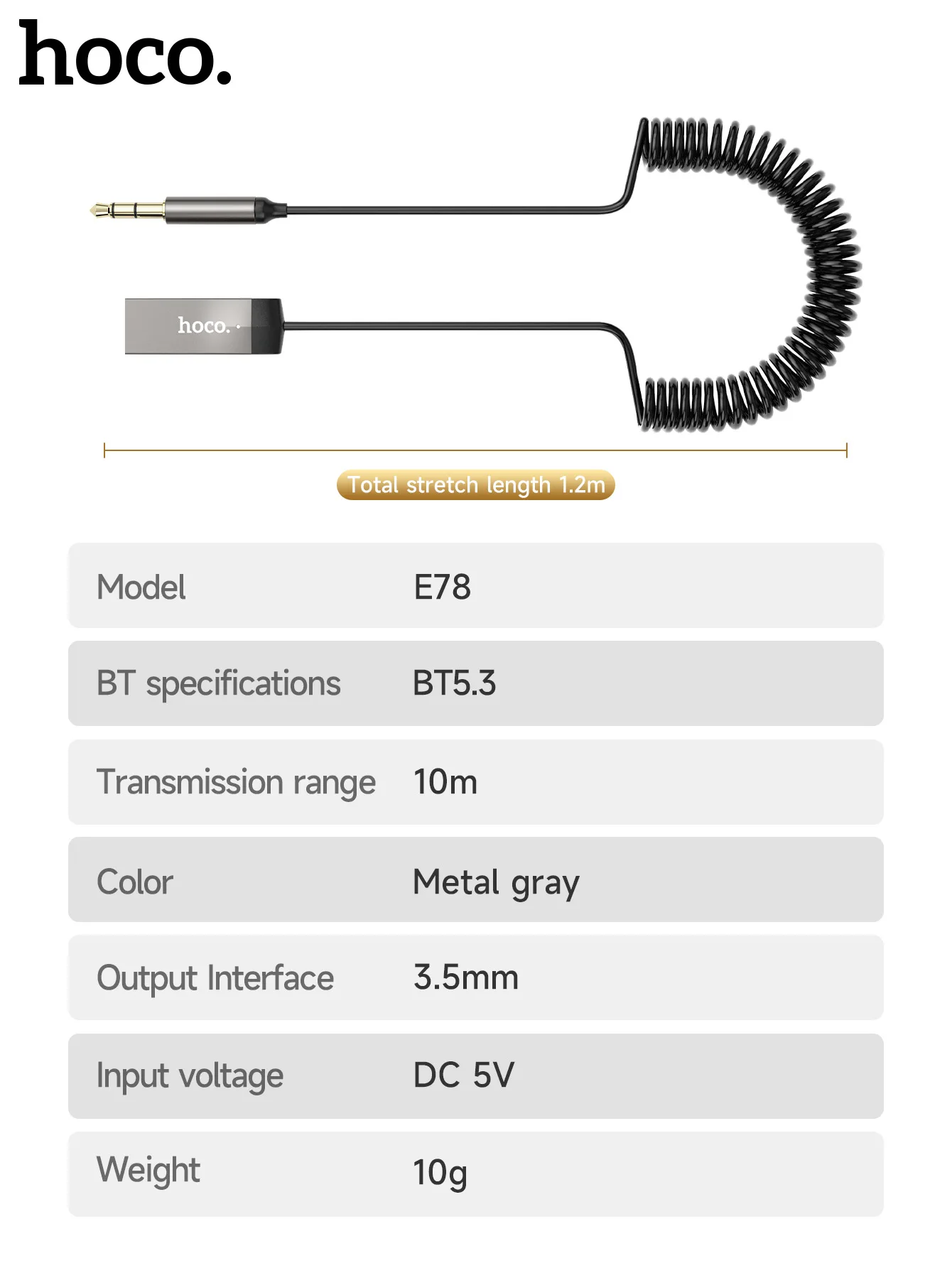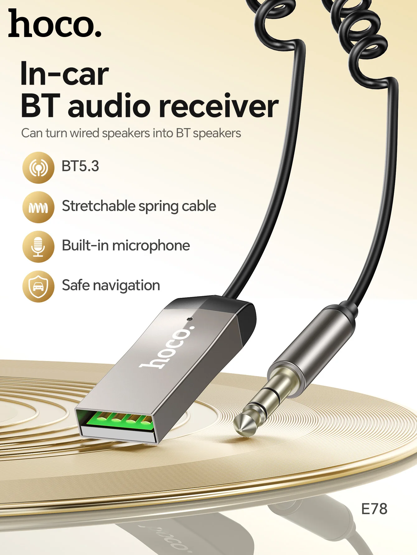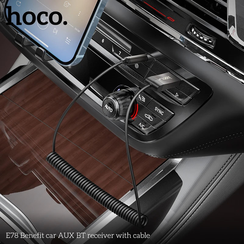 HOCO E78 In-Car Bluetooth Audio Receiver (BT5.3, AUX 3.5mm)