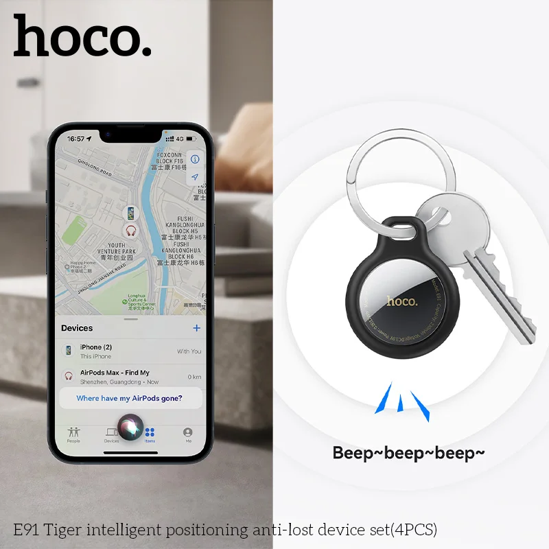 HOCO E91 4 Pack Smart Anti-Lost GPS Tracker with Apple Find My Integration