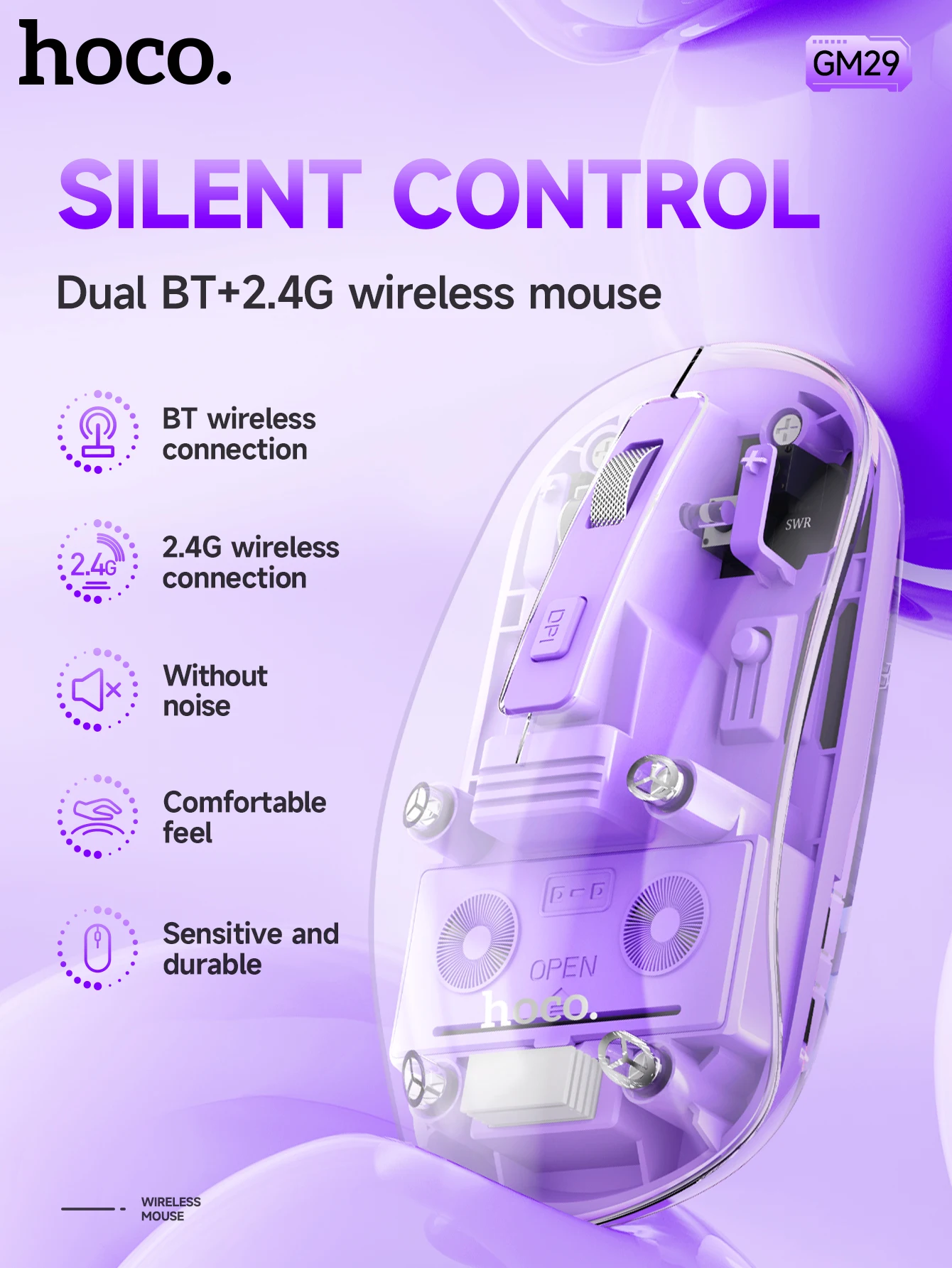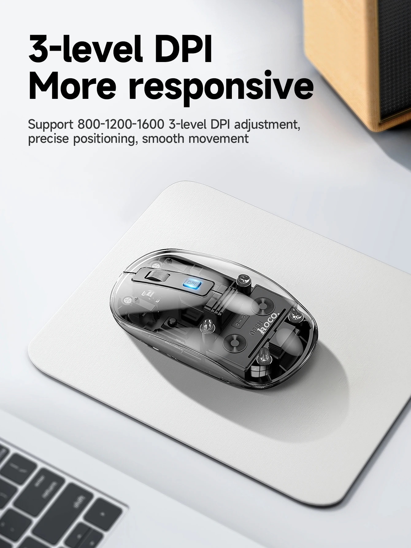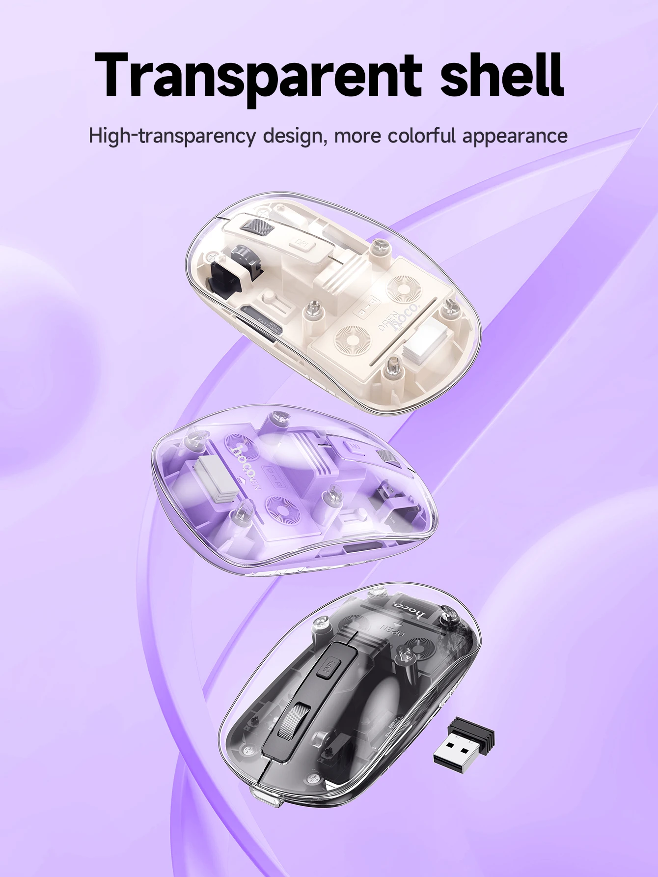 HOCO GM29 Transparent Dual-Mode Wireless Mouse – 1600 DPI Silent