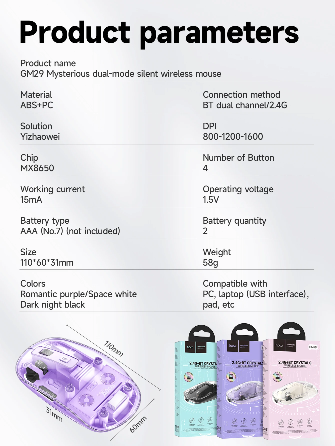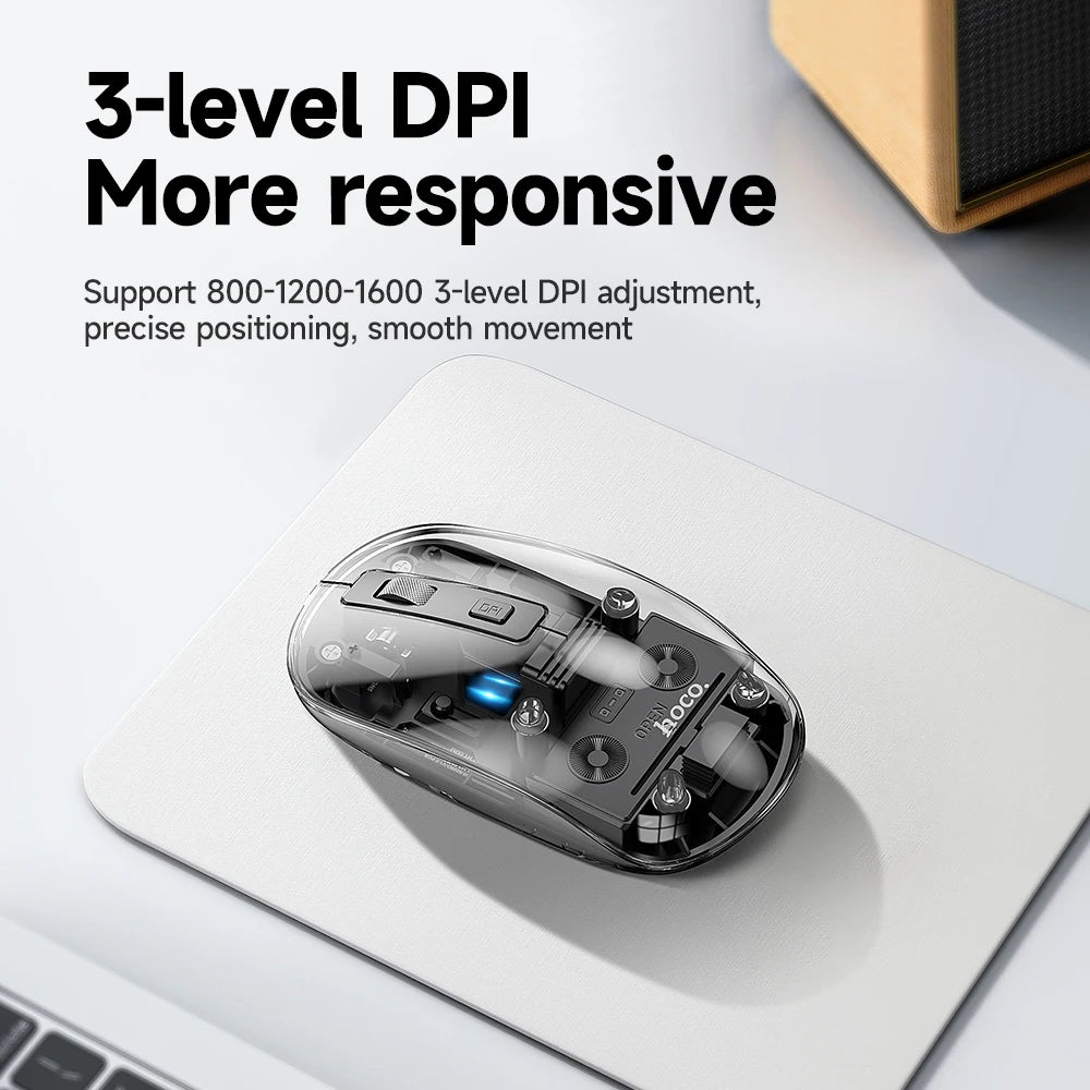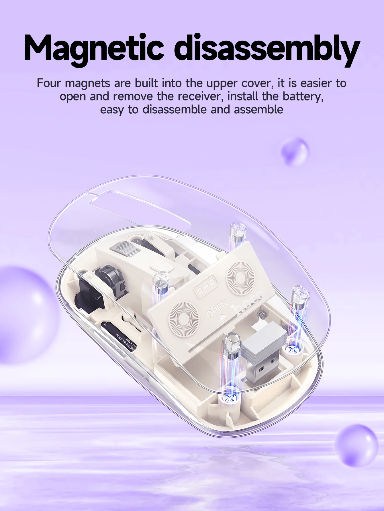 HOCO GM29 Transparent Dual-Mode Wireless Mouse – 1600 DPI Silent