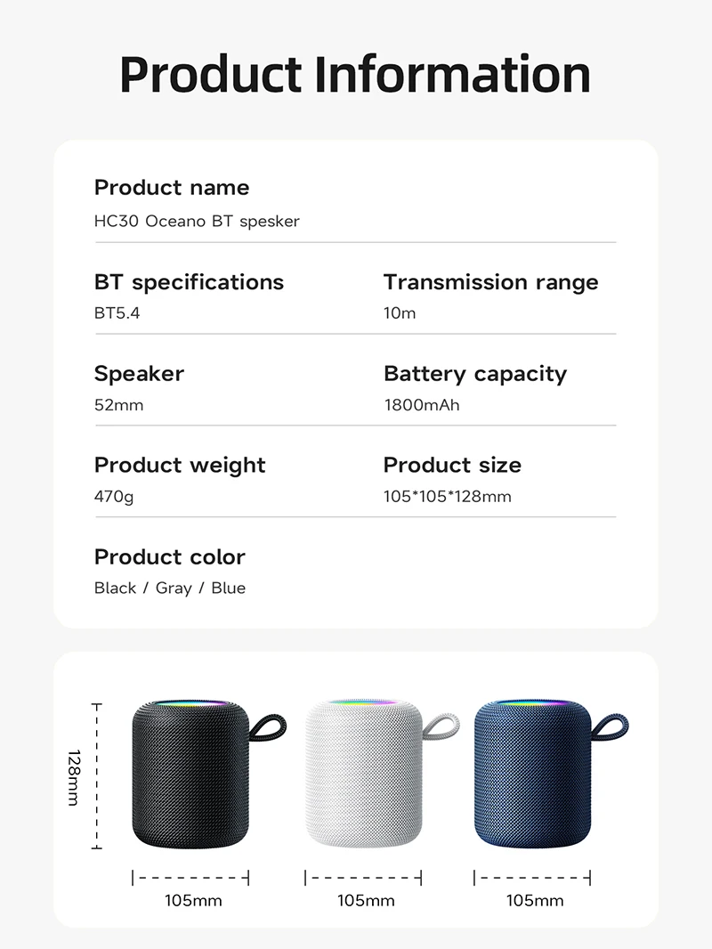 HOCO HC30 LED Mini Bluetooth Speaker – 5W Portable Sound