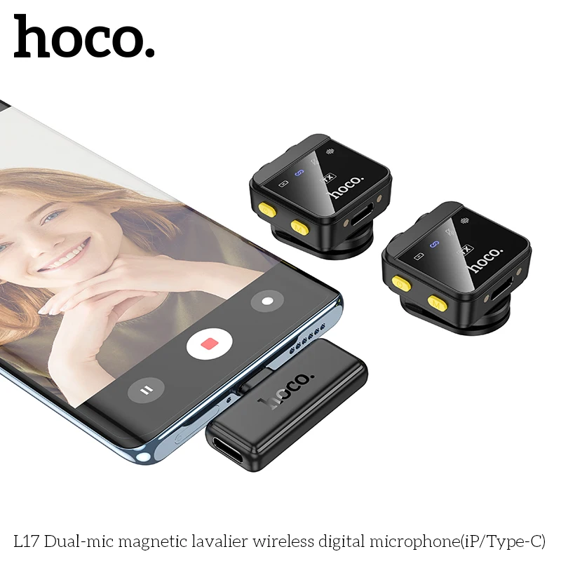 HOCO L17 Dual-Mic Magnetic Wireless Lavalier Microphone