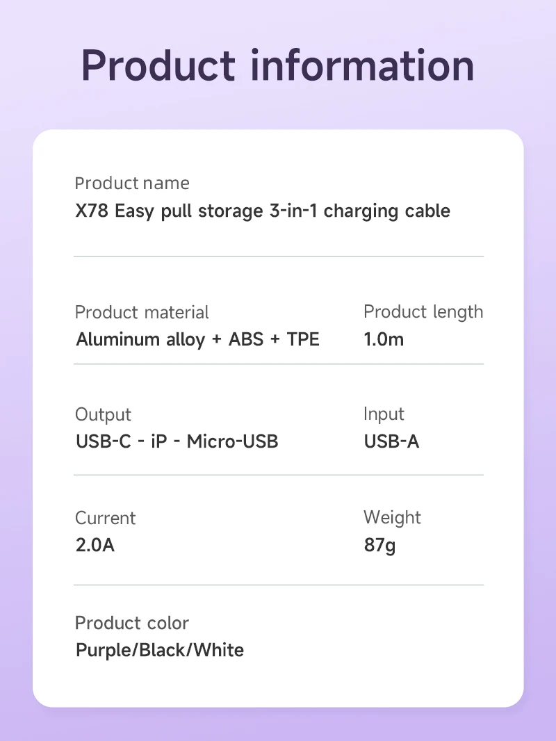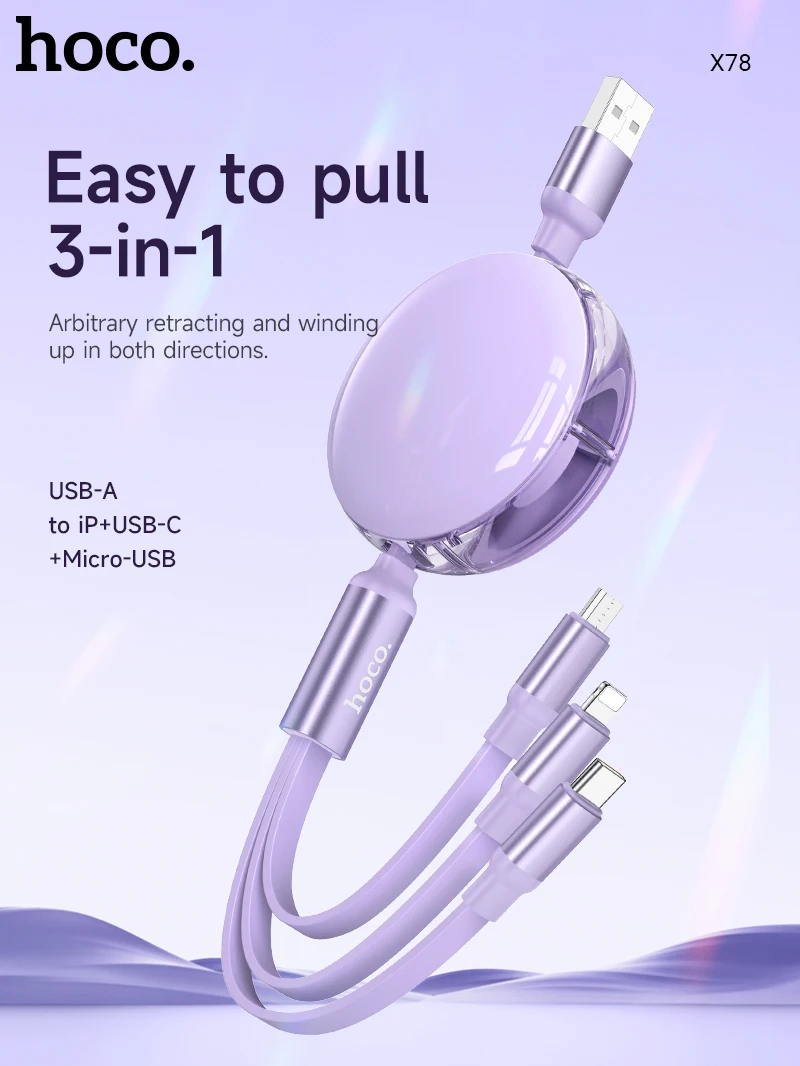 HOCO X78 Retractable 3-in-1 Charging Cable